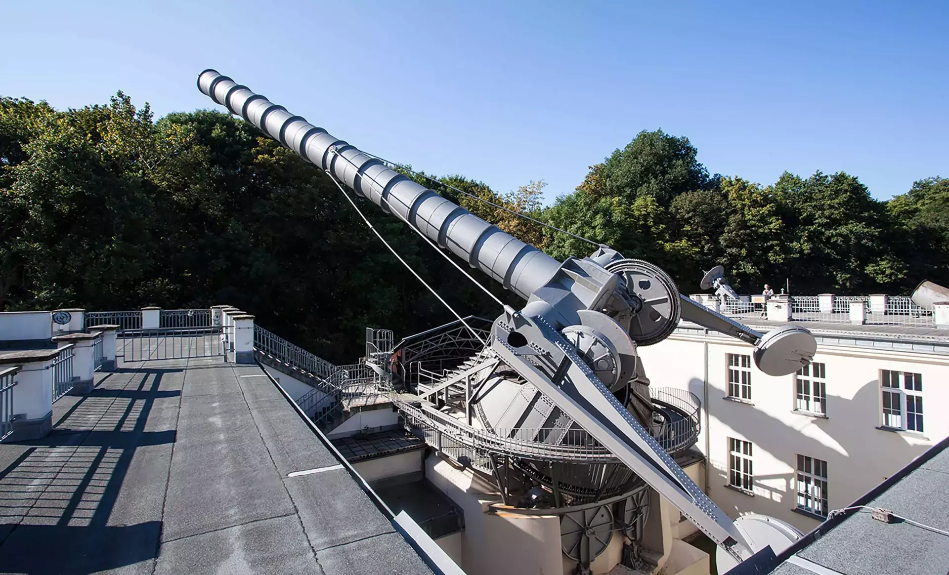 The Archenhold Observatory is home to the longest moving refracting telescope in the world. Measuring 21 meters in length with a lens diameter of 68 centimeters, this impressive instrument showcases the scale and ambition of late 19th-century astronomy.