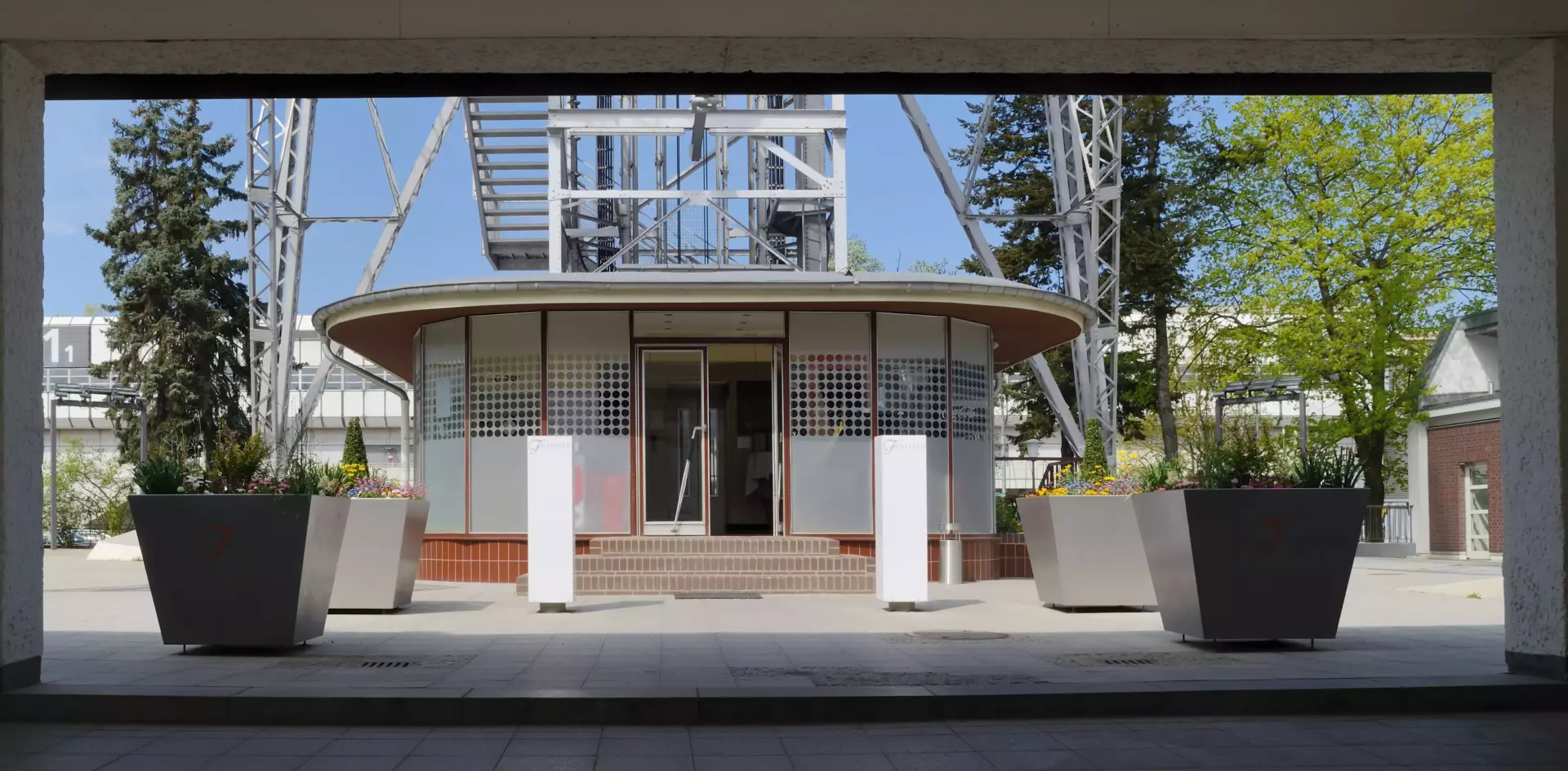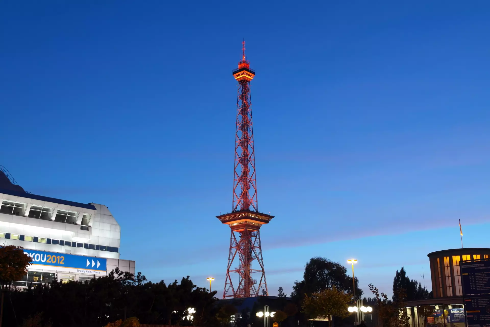 The tower stands beside the Messehallen, Berlin’s expansive trade fair complex. Its lattice construction, both functional and elegant, reflects an era when radio and television signals needed tall, robust platforms. The exhibition halls below host major events, and the tower’s silhouette has long served as their companion and beacon.