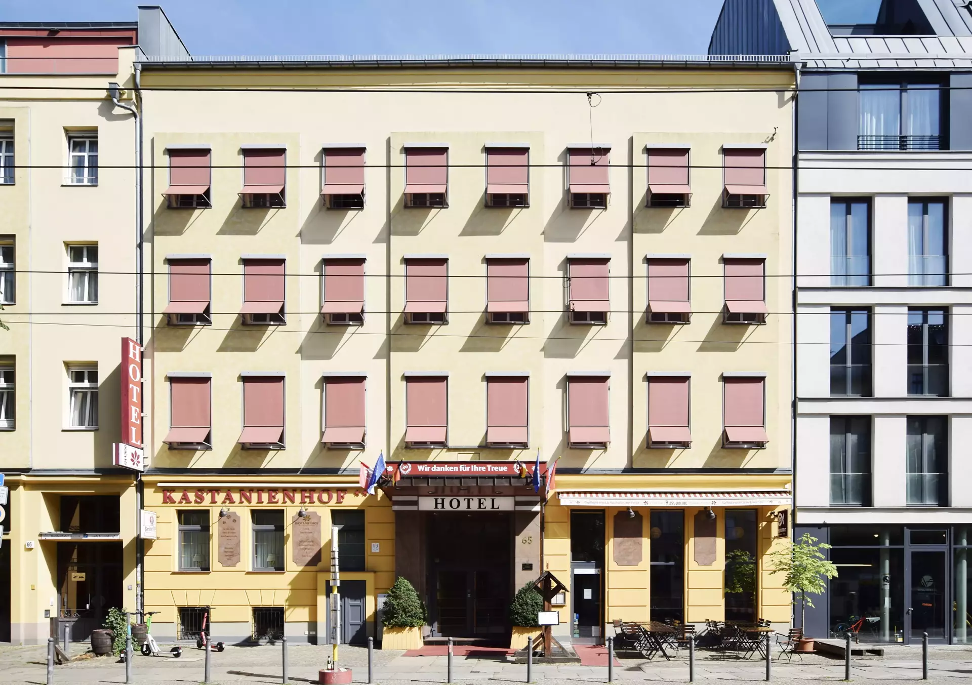 Kastanienallee is a lively street lined with cafés and fashion boutiques. Along the main stretch, storefronts spill onto the sidewalks with outdoor seating, window displays, and steady foot traffic.