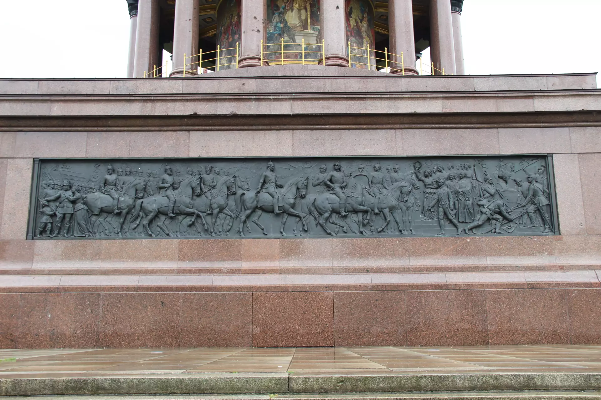 At the base, relief panels depict scenes from the conflicts the column commemorates. These artworks have their own complicated history. In 1945, the Allied powers ordered their removal. Decades later, the panels were remounted, returning in stages in 1984 and 1987. The monument thus carries layers of memory — artistic, political, and civic — in its stone and bronze surfaces.