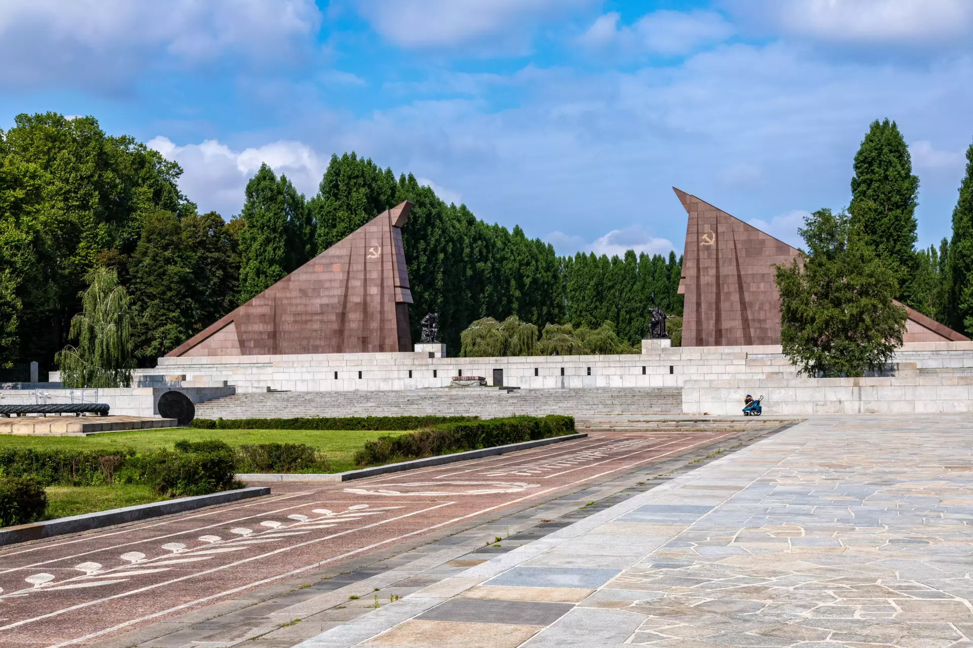 The memorial sits in what was once the British sector of the divided city. During the years of Berlin’s partition, Soviet troops guarded the site, which has led to a common belief that it enjoyed extraterritorial status. In fact, it did not. The memorial remained under local jurisdiction despite the continuous Soviet presence.