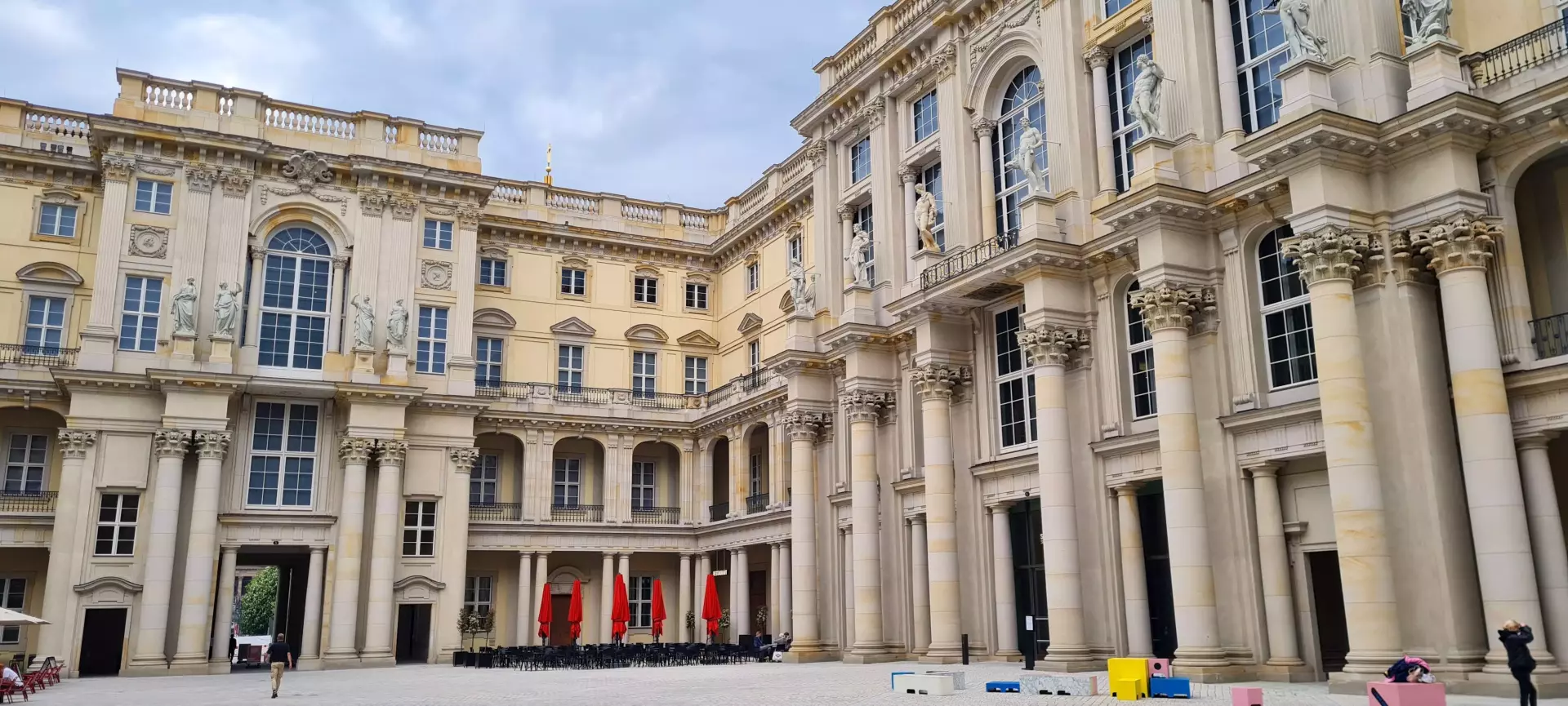 The project included the reconstruction of the Schlüterhof, an inner courtyard named after baroque architect Andreas Schlüter. After delays, the building opened in 2021 as the Humboldt Forum. Inside are museums, exhibitions, and cultural spaces. A roof terrace offers broad views over central Berlin.