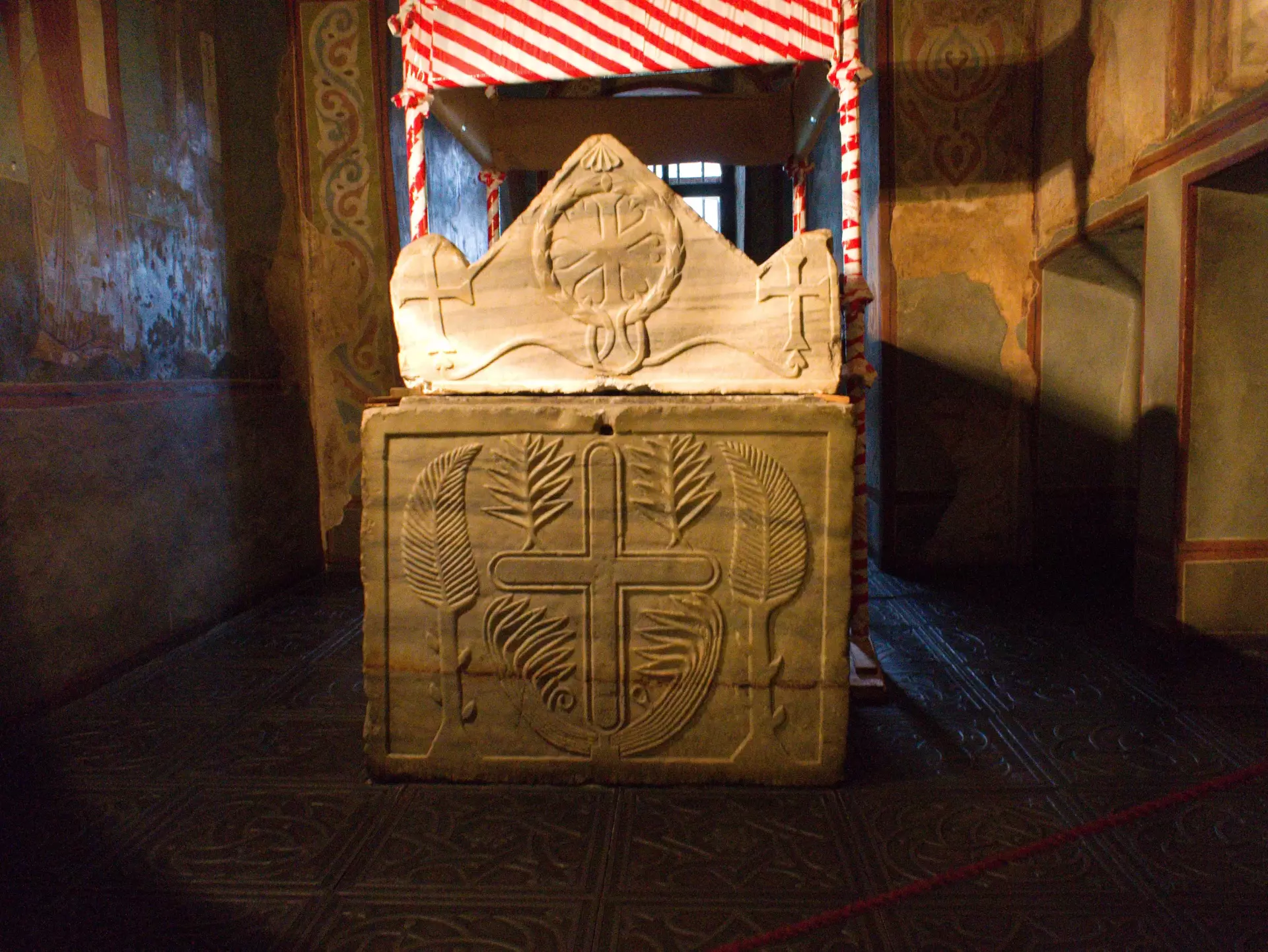 Relics of 49 saints, accompanied by plates with names and icons. The total length of underground corridors is 293 m. There are three underground cave churches: Annunciation, Nativity and Reverend Theodosius.