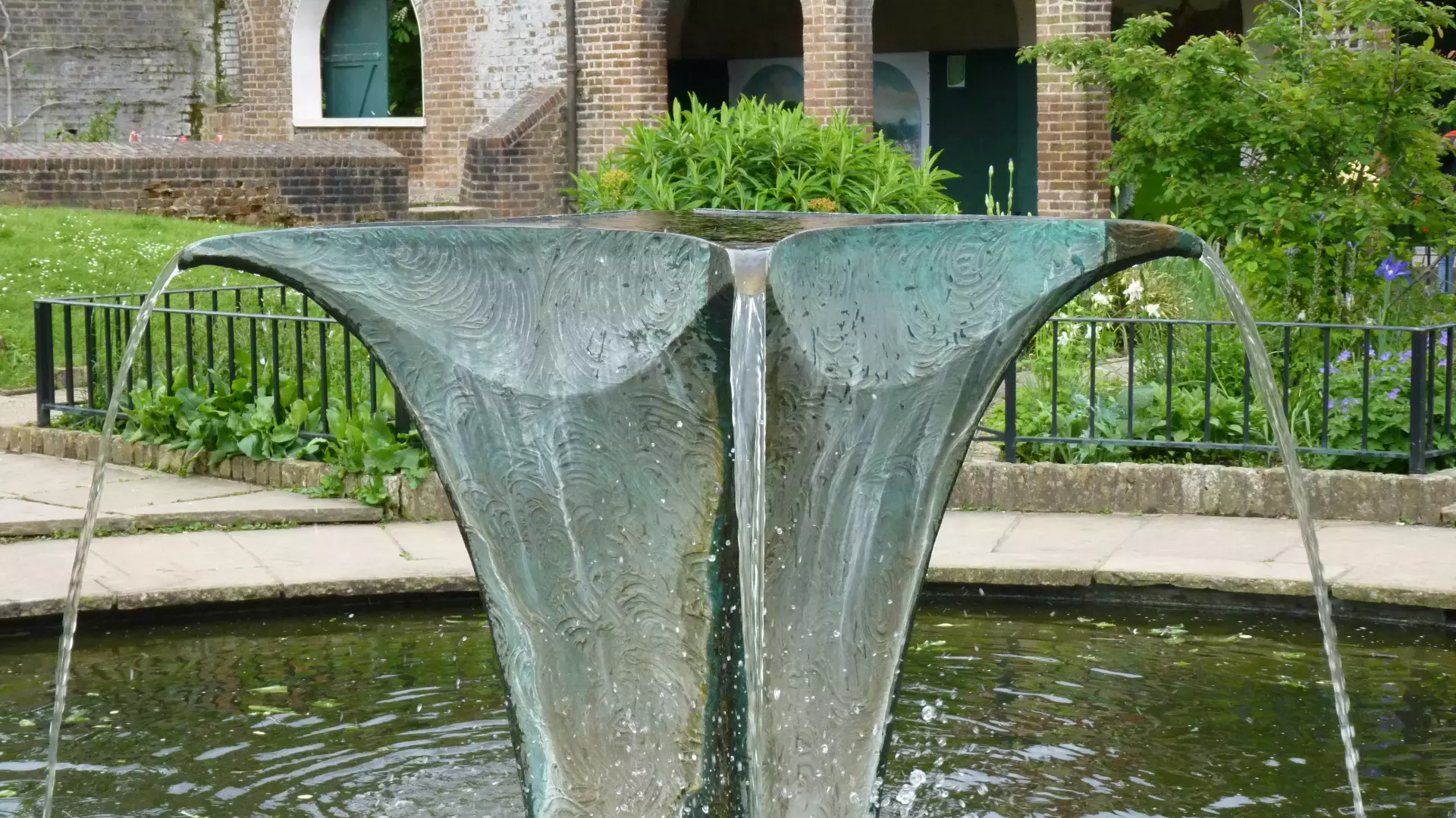 The eastern half of the twin parks. Of the two, Hyde Park is open for longer and has more open, unwooded land; it is often host to concerts, fun fairs and events. More of an artificial stream than a fountain, flowing in an oval through an open grassy area which, in normal summers, is a popular paddling spot for children and grown-ups alike.