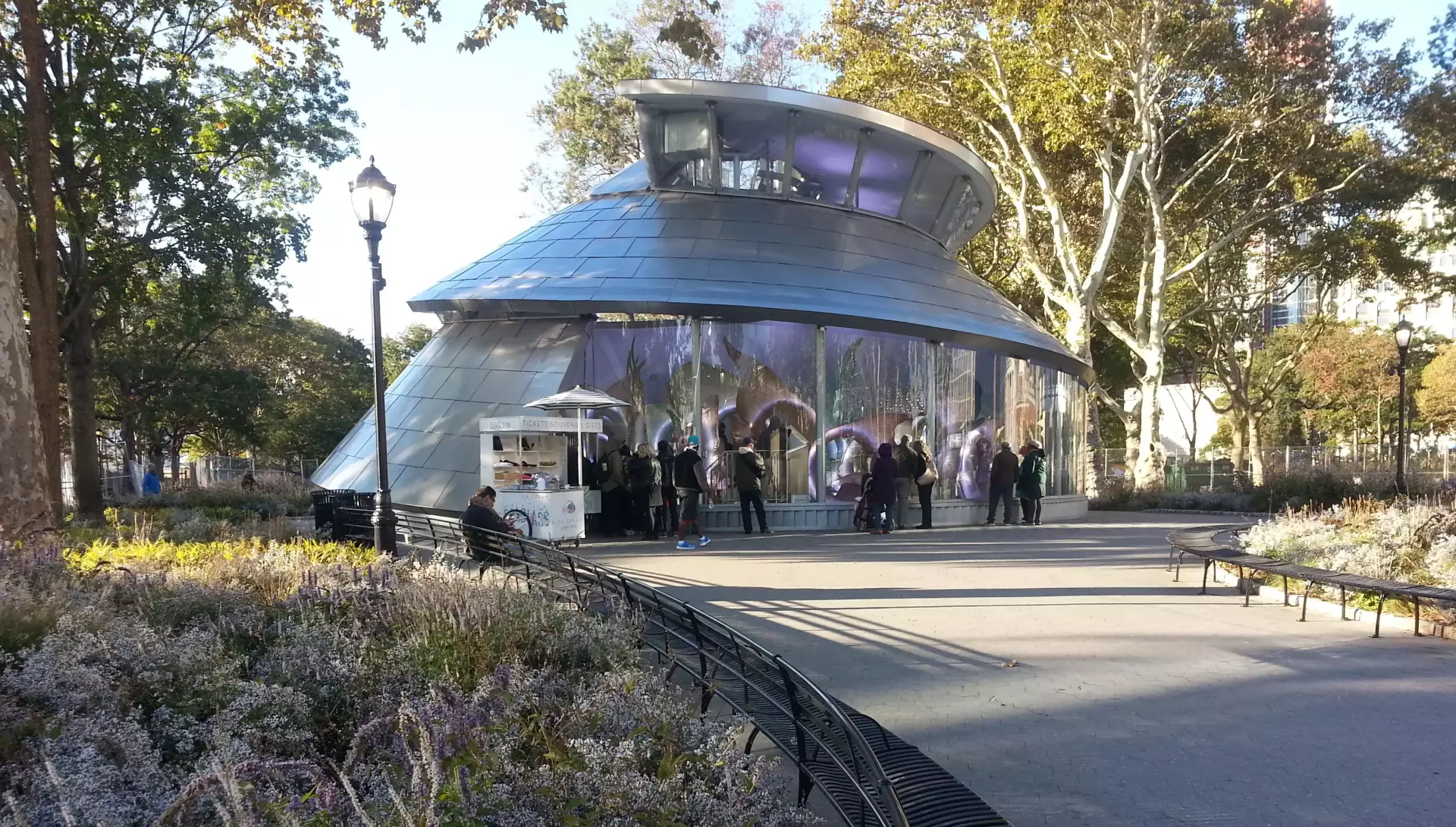 Battery Park is home to several poignant memorials. Among them is The Sphere, a compelling public art piece that originally stood at the World Trade Center site. Remarkably, it withstood the events of September 11 and was relocated to Battery Park, where it now serves as a symbol of resilience.