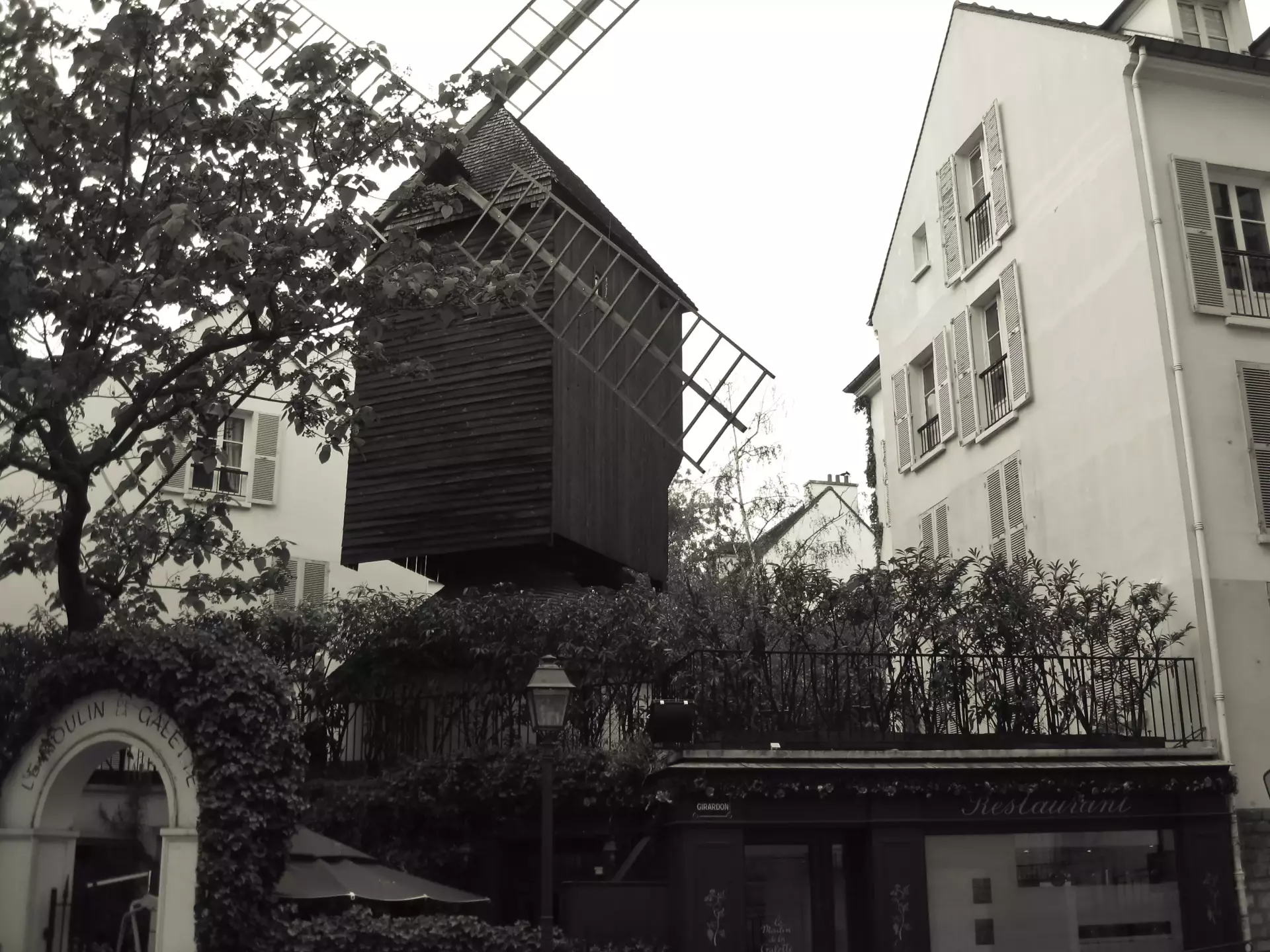 Standing tall since 1717, the windmill known as Moulin de la Galette continues to draw attention from visitors and locals alike. Its sails rise above the rooftops, easily visible from the bustling street below.