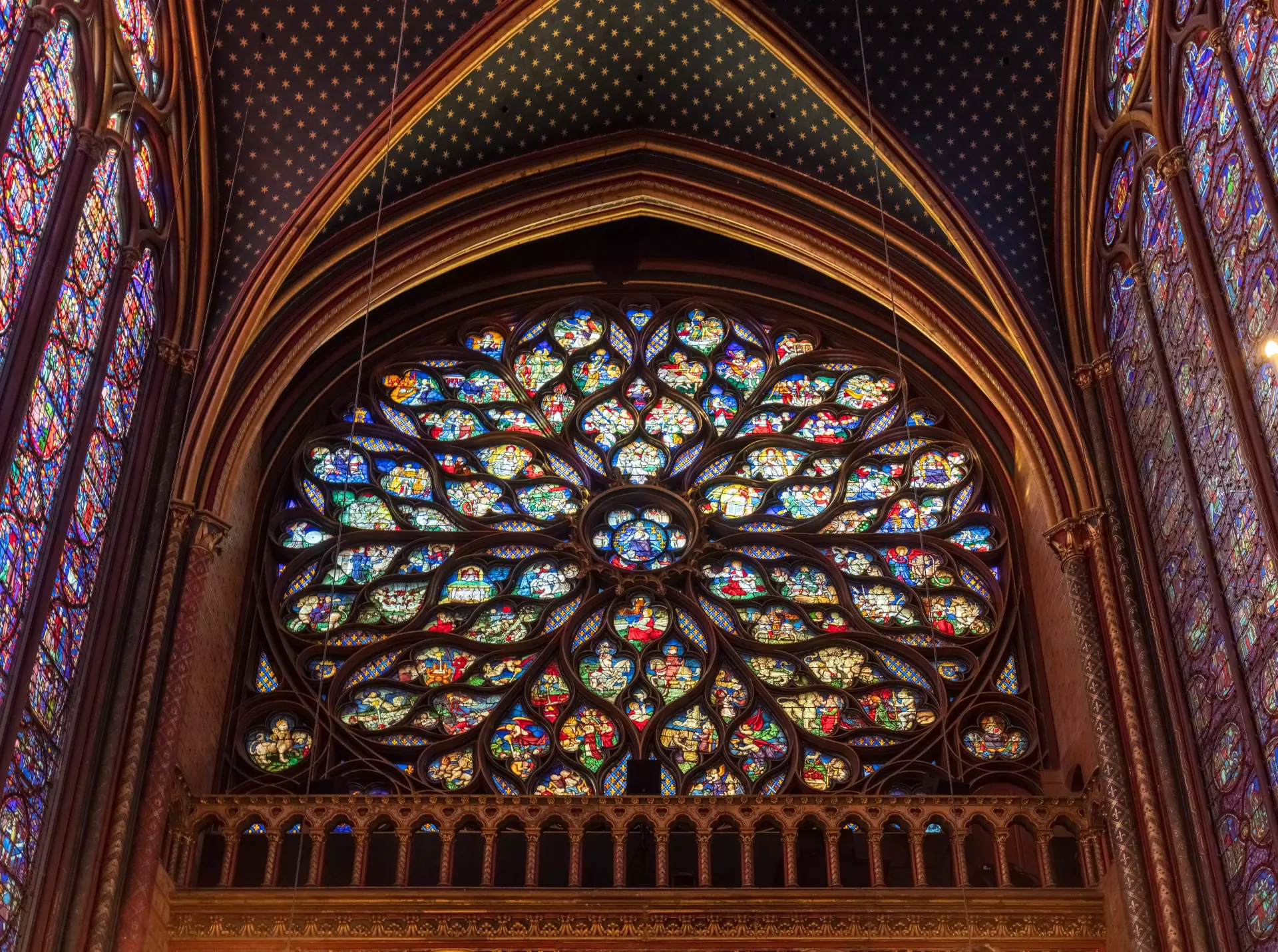 This chapel is a classic example of Rayonnante Gothic architecture, known for its tall windows and delicate stonework. The upper chapel is the best place to see the windows and the play of colored light. Downstairs, the lower level is decorated in an equally ornate style, offering more to discover.