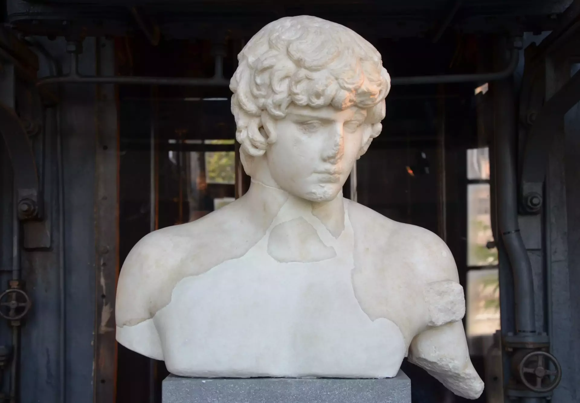 Most of the museum’s exhibits come from excavations at Roman archaeological sites. Marble statues, mosaics, and intricate reliefs stand between the old turbines and control panels of the power plant. The combination highlights the transformation of the space from a center of modern progress to a celebration of ancient history.